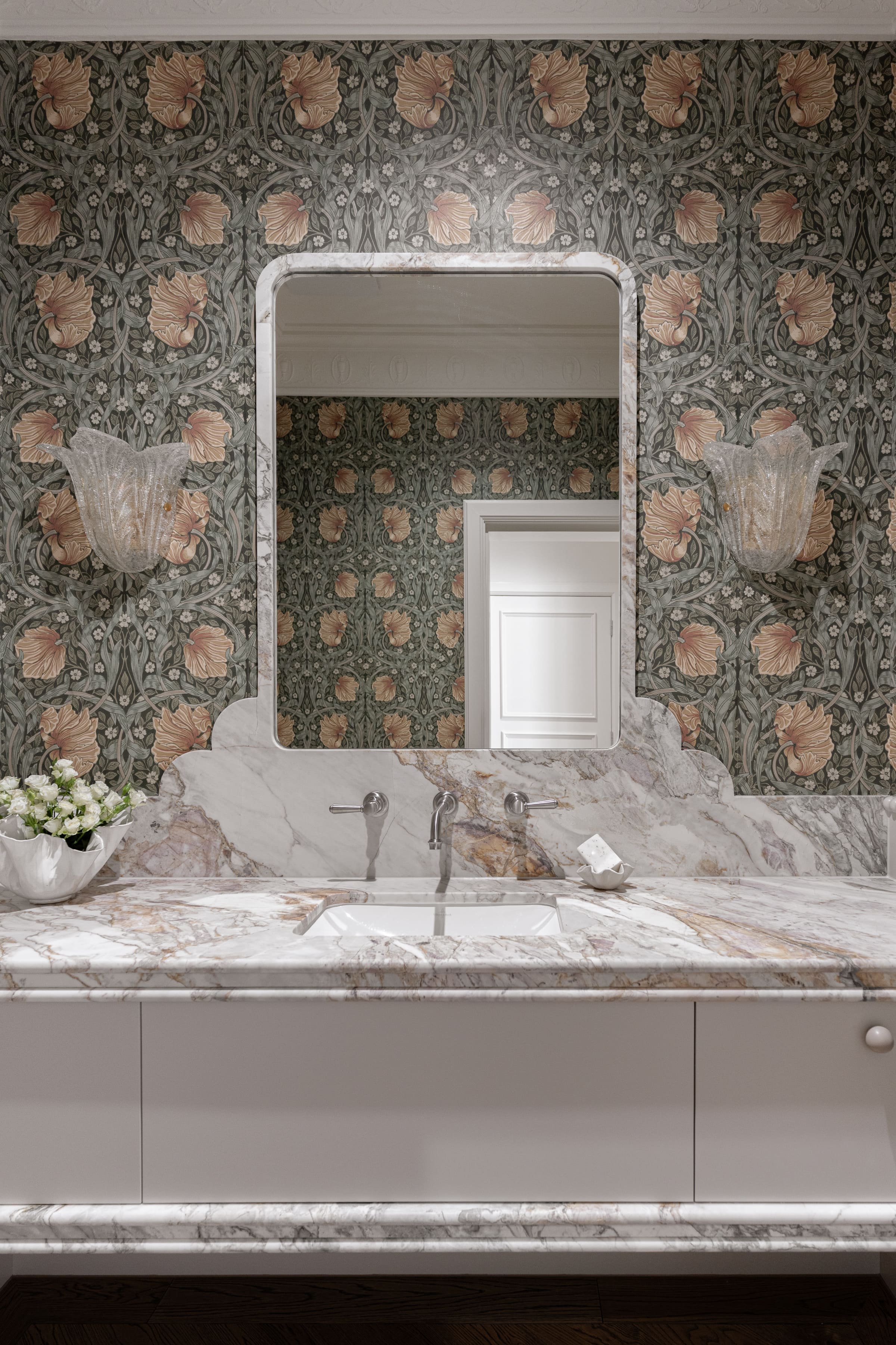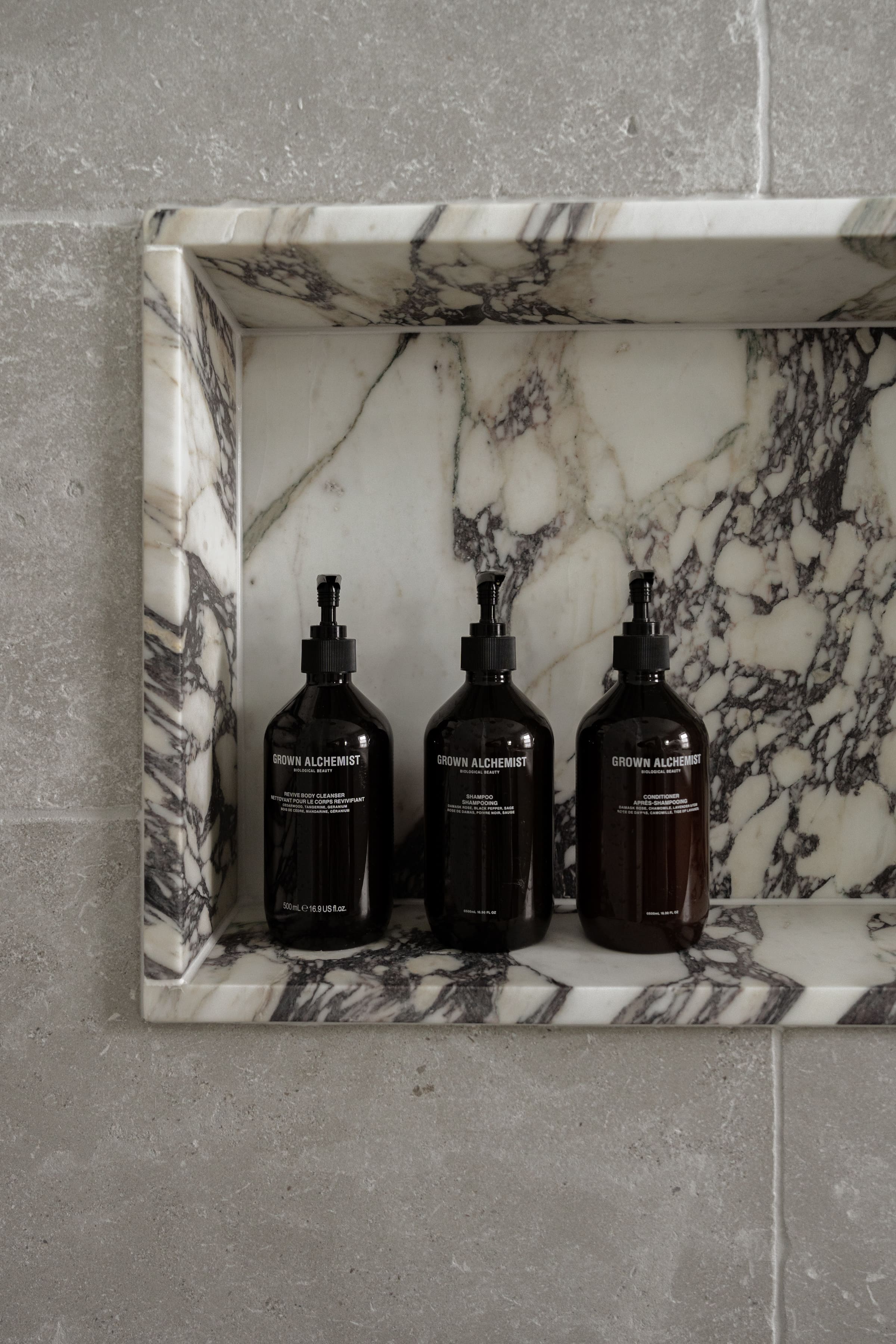 The bathrooms in this home are a true stone oasis — celebrating natural stone in all its dramatic beauty. From the richly veined CDK Stone Calacatta Viola and the deep, moody movement of CDK Stone Breccia Dei Medici, to the soft, understated elegance of CDK Stone Santo Blue Honed — every surface was carefully crafted to bring texture, depth, and timeless character.